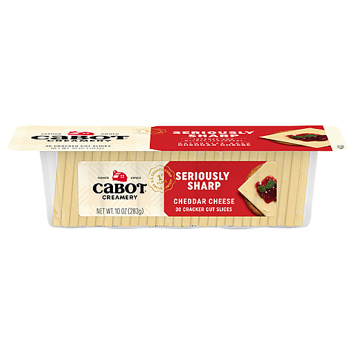 Enjoy the ultimate sharp cheddar experience with our farmers' Seriously Sharp Cheddar Cheese Cracker Cuts. Pre-sliced to make your cheddar cravings even easier to satisfy, this complex premium cheddar is expertly aged until it reaches the perfect balance of bold bite and nutty tanginess. Stack our Cracker Cuts tall on a hearty turkey sandwich, or enjoy with your favorite crispy crackers or soft bread for sumptuous snacking anytime you're craving the unmatched taste of the World's Best Cheddar. Cabot cheese is gluten-free with zero grams of lactose.
