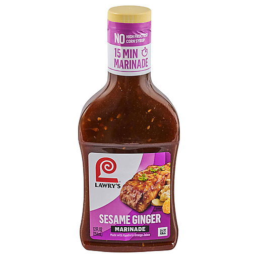 Lawry's Sesame Ginger Marinade tantalizes your taste buds with a lively mix of mandarin orange juice, soy sauce, toasted sesame, ginger & garlic. It adds distinctive Asian flavor to chicken, pork, beef, seafood or vegetables. Treat your family to Asian night at home with our 15-minute marinade. Featuring natural flavors & spices, and no high fructose corn syrup or added MSG*, Sesame Ginger Marinade infuses meal time with convenient, yet flavorful Asian flair. Simply marinate your favorite vegetables, meat or seafood for 15 minutes, then cook on the grill, stovetop or oven. It's amazing as a poultry marinade for Ginger Chicken Stir-Fry or Sesame Wings recipes and as a seafood marinade for salmon. *Except those naturally occurring glutamates.