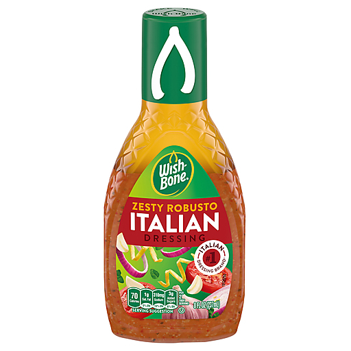 Wish-Bone Zesty Robusto Italian Dressing adds bold flavor to your favorite dishes. Made with the signature Wish-Bone recipe, garlic and oregano, this Italian dressing adds an extra zesty flourish of bold flavor to marinades, pasta salads and more. Wish-Bone Zesty Robusto Italian Dressing mixes into your salads easily, providing robust flavor in every bite. Not only is this zesty Italian dressing made without high fructose corn syrup, but it also contains no artificial preservatives or flavors. This zesty Italian salad dressing complements a variety of fresh salads, adds flavor to a chicken marinade, and is tasty with beef or a side of vegetables. The 8 fluid ounce squeeze salad dressing bottle makes it easy to dispense the perfect amount. Refrigerate the dressing after opening. From robust Italian dressing to light vinaigrettes, Wish-Bone has what you need to make your dishes amazing.